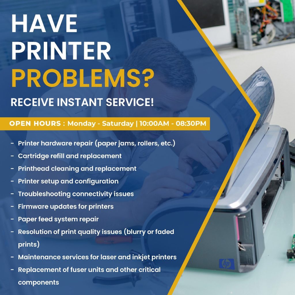 Our team of expert technicians is dedicated to providing efficient and reliable printer repairs, ensuring minimal downtime for your business. We offer customizable maintenance contracts to optimize printer performance and extend their lifespan