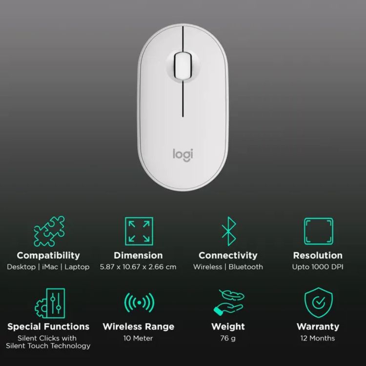 Be the first to review “logitech Pebble Mouse 2 Wireless Optical Mouse with Silent Click Buttons (1000 DPI, Ultra Portable, Tonal White)”